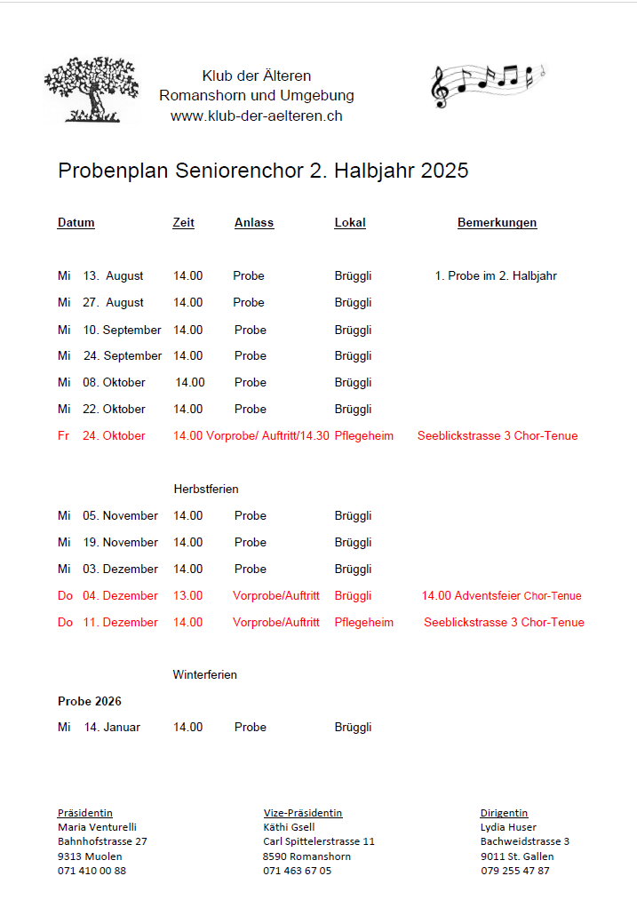 Der Seniorenchor Romanshorn ist eine Teilorganisation vom Klub der Älteren Romanshorn.